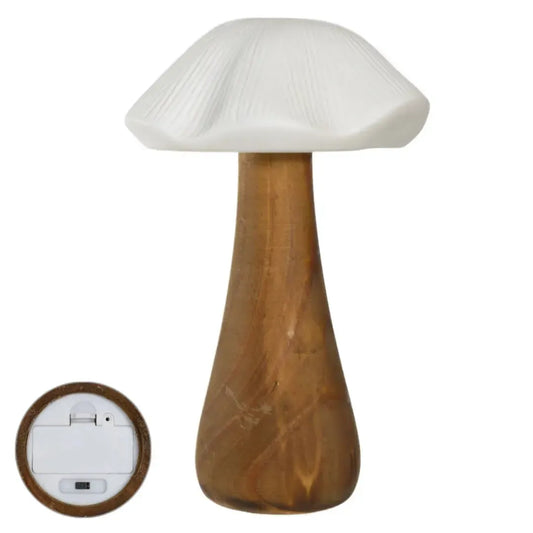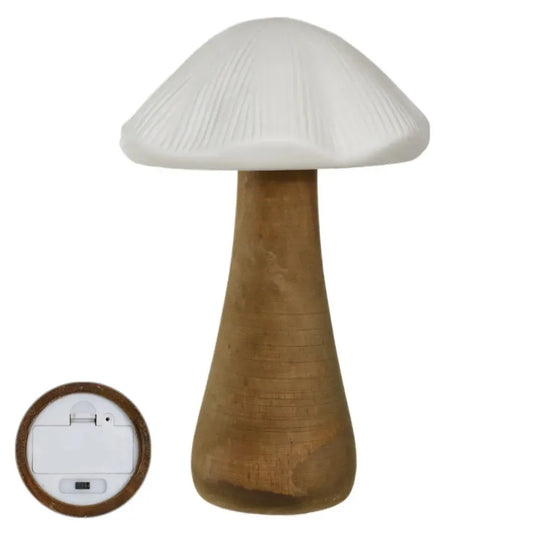 Adorno Decorativo Cogumelo Led Cerâmica Branco/ Bege 24,5x15,7x15,3cm Florarte
