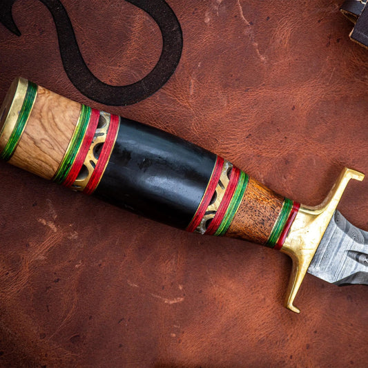 Economize R$ 124,95Adaga Artesanal Artemano em Aço Damasco 256 Camadas com Cabo em Pakkawood