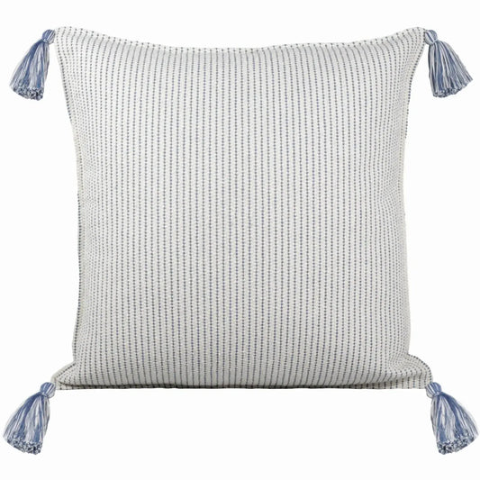 Economize R$ 56,67Almofada Bouclé Azul 60x60 Listra Fina e Pingente de Tecido
