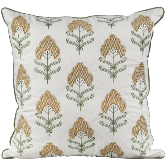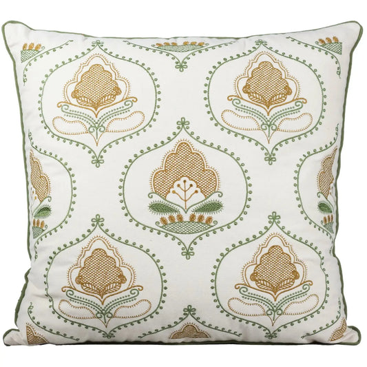 Economize R$ 147,07Almofada Sarja Cru 52x52 Bordado Verde Fino Indiano Shanti