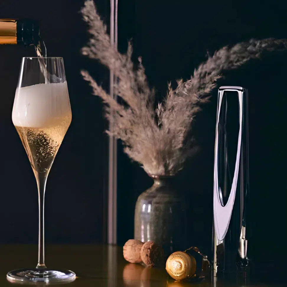 Todos nós gostamos de comemorar ocasiões especiais abrindo uma garrafa de champanhe ou vinho espumante. Esta ferramenta adiciona um pouco de magia ao momento. Deslize o saca-rolhas no gargalo da garrafa, empurre com firmeza e gire. A rolha vai sair com a espingarda clássica e, em seguida, ser coletada dentro do saca-rolhas.