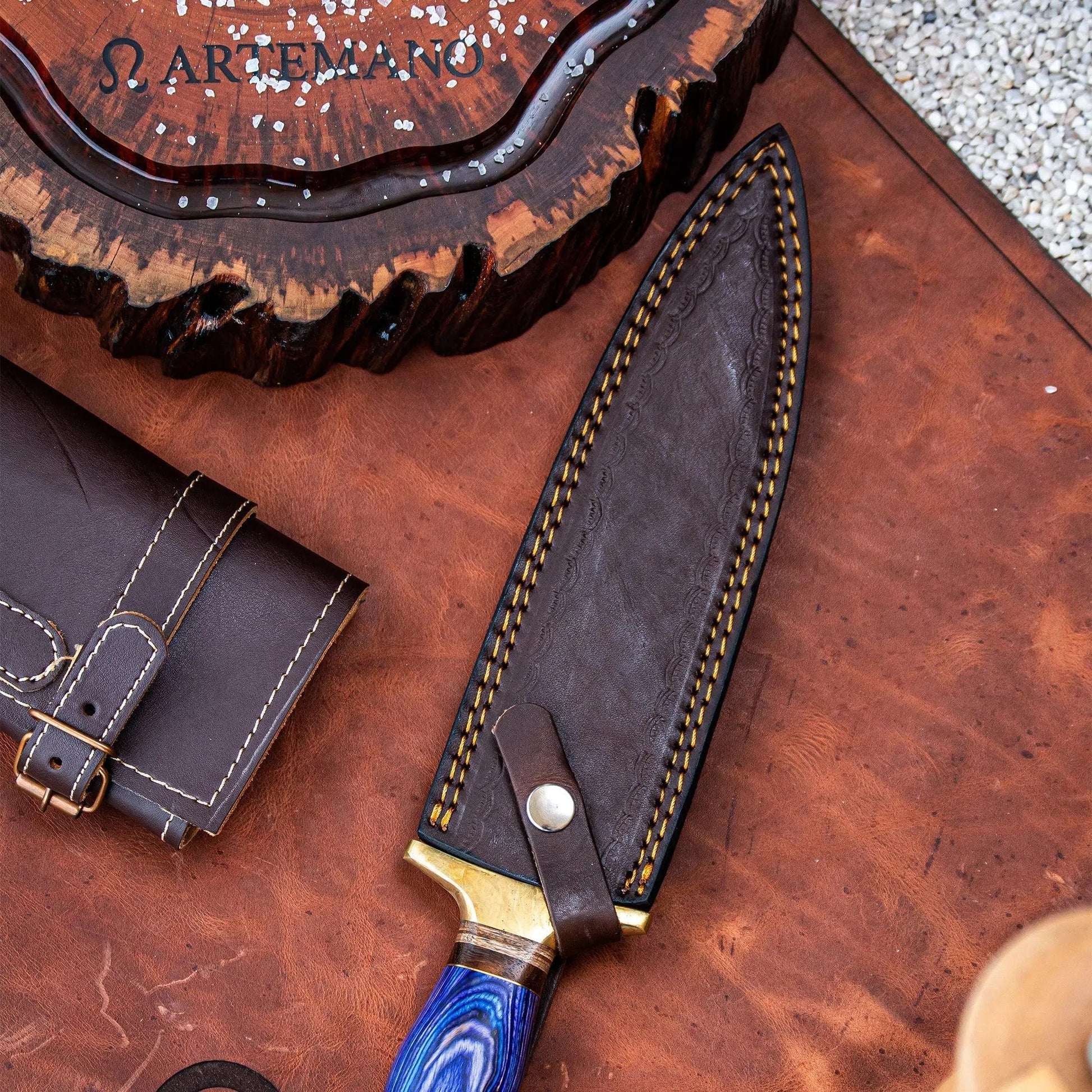 Adaga Artesanal Artemano em Aço Damasco 256 Camadas com Cabo em Pakkawood