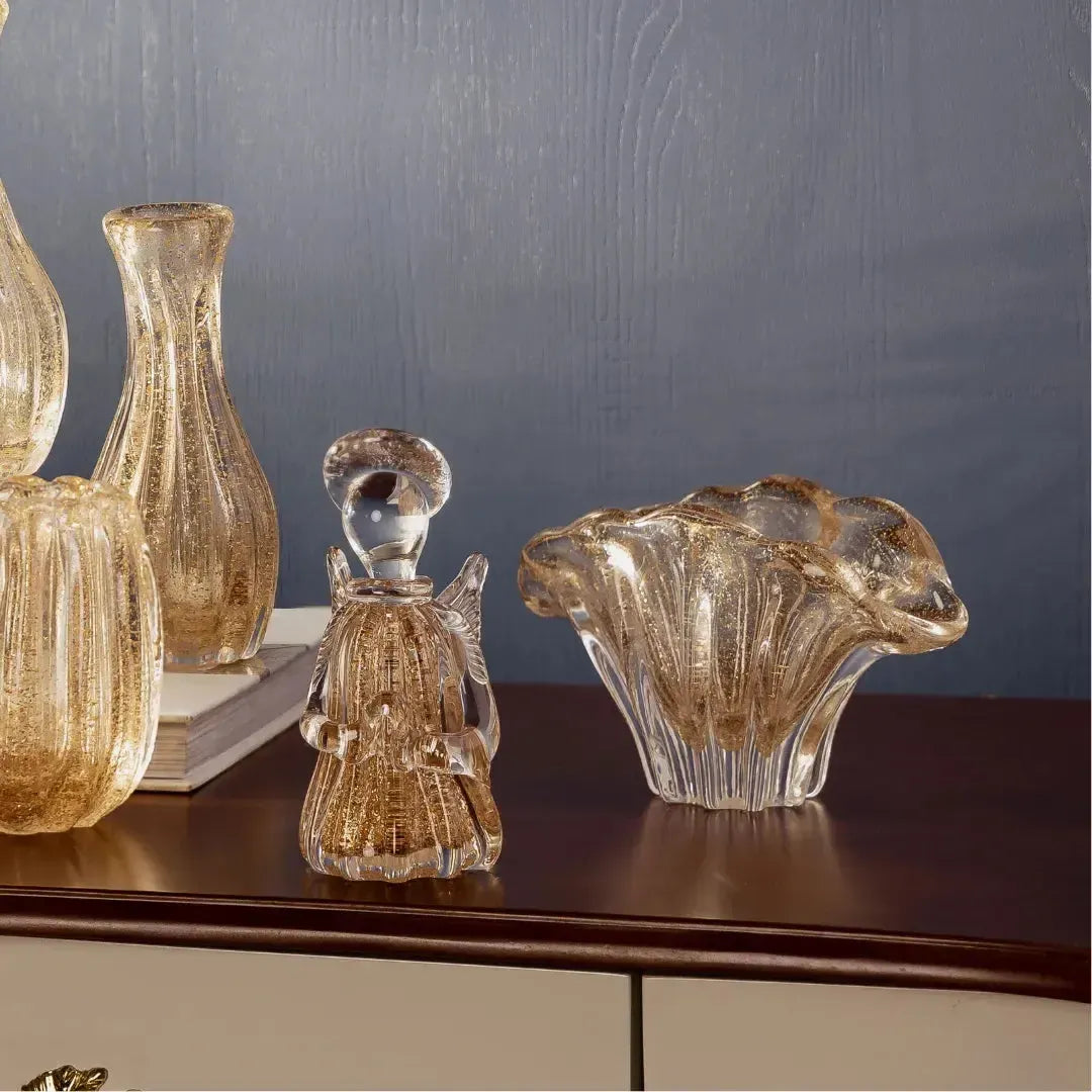 Adorno Decorativo Anjo Vidro Italy Dourado 7x7x15cm