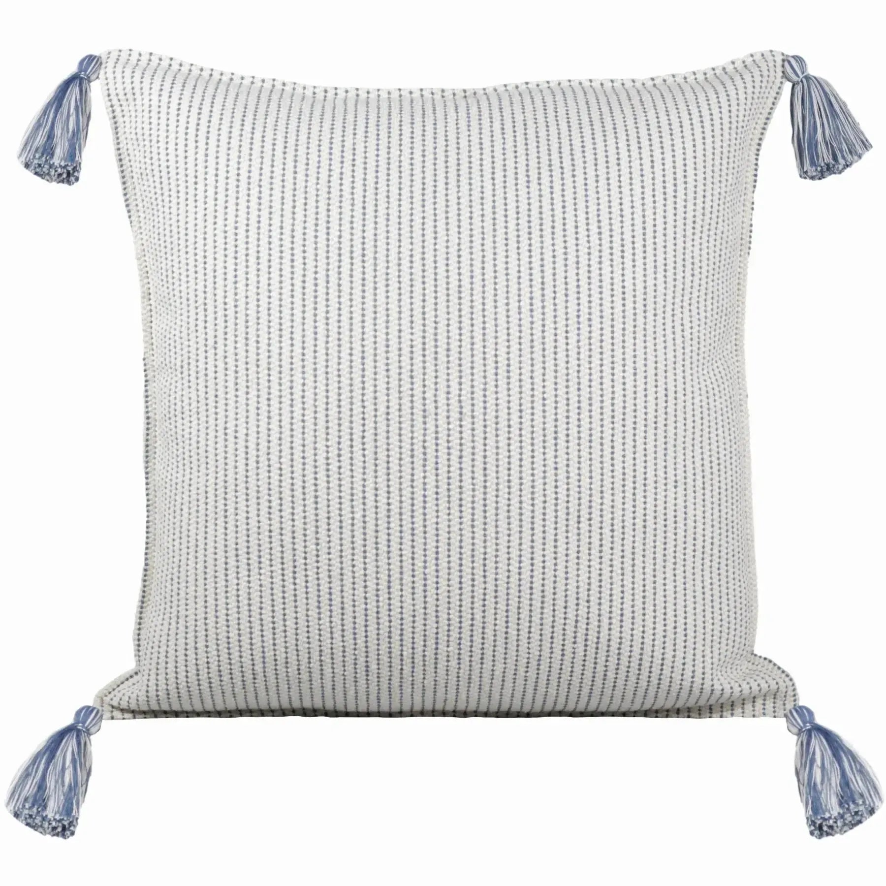 Almofada Bouclé Azul 60x60 Listra Fina e Pingente de Tecido