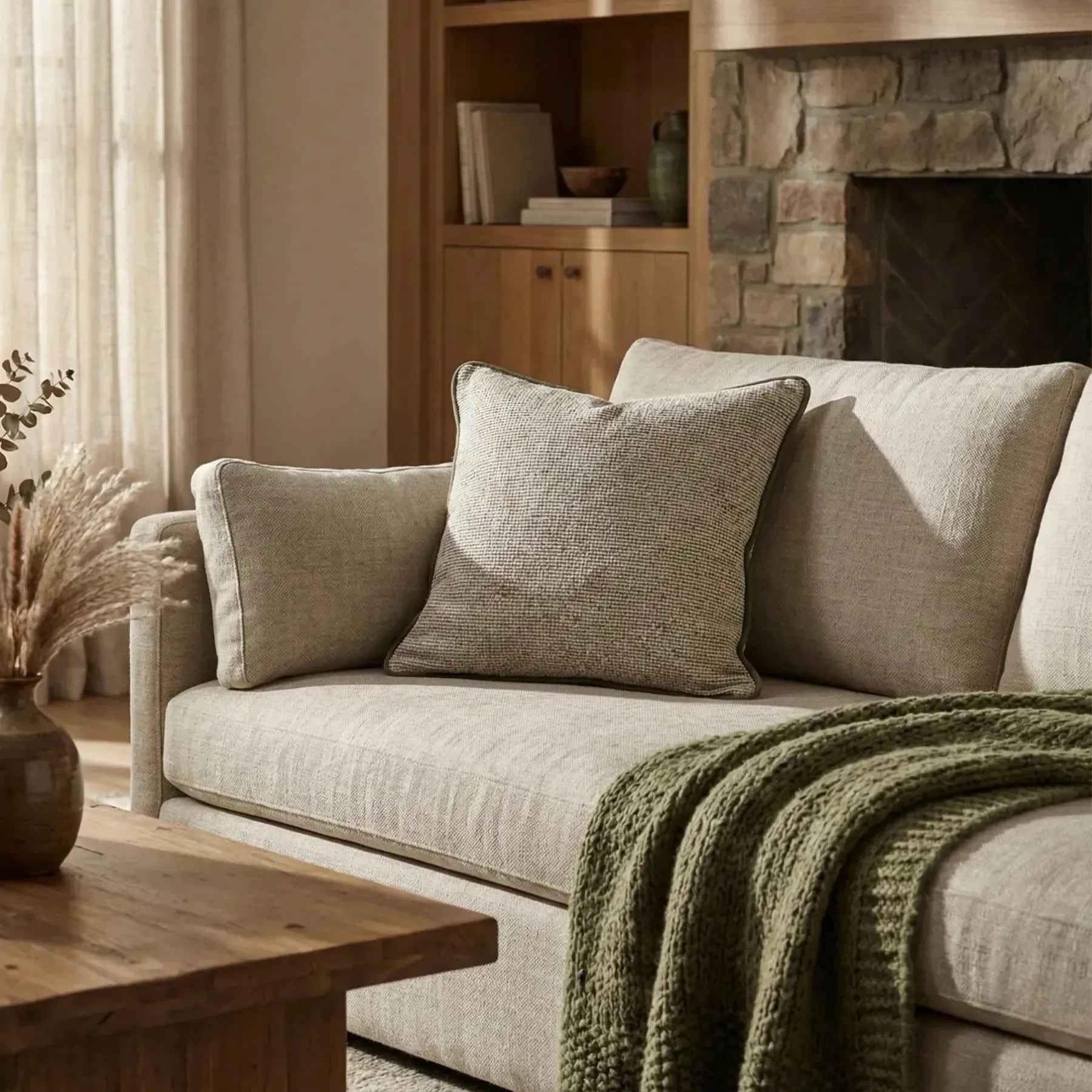 A Almofada Rústica Cordão Camurça Musgo 52 x 52 combina textura elegante e acabamento artesanal para transformar qualquer ambiente com aconchego e sofisticação. Seu tecido com trama rústica em tons neutros cria um visual natural e versátil, enquanto o detalhe em cordão de camurça adiciona um toque refinado que valoriza o design. Macia, durável e perfeita para compor salas, quartos ou varandas, é a escolha ideal para quem busca estilo atemporal aliado ao conforto no décor.
