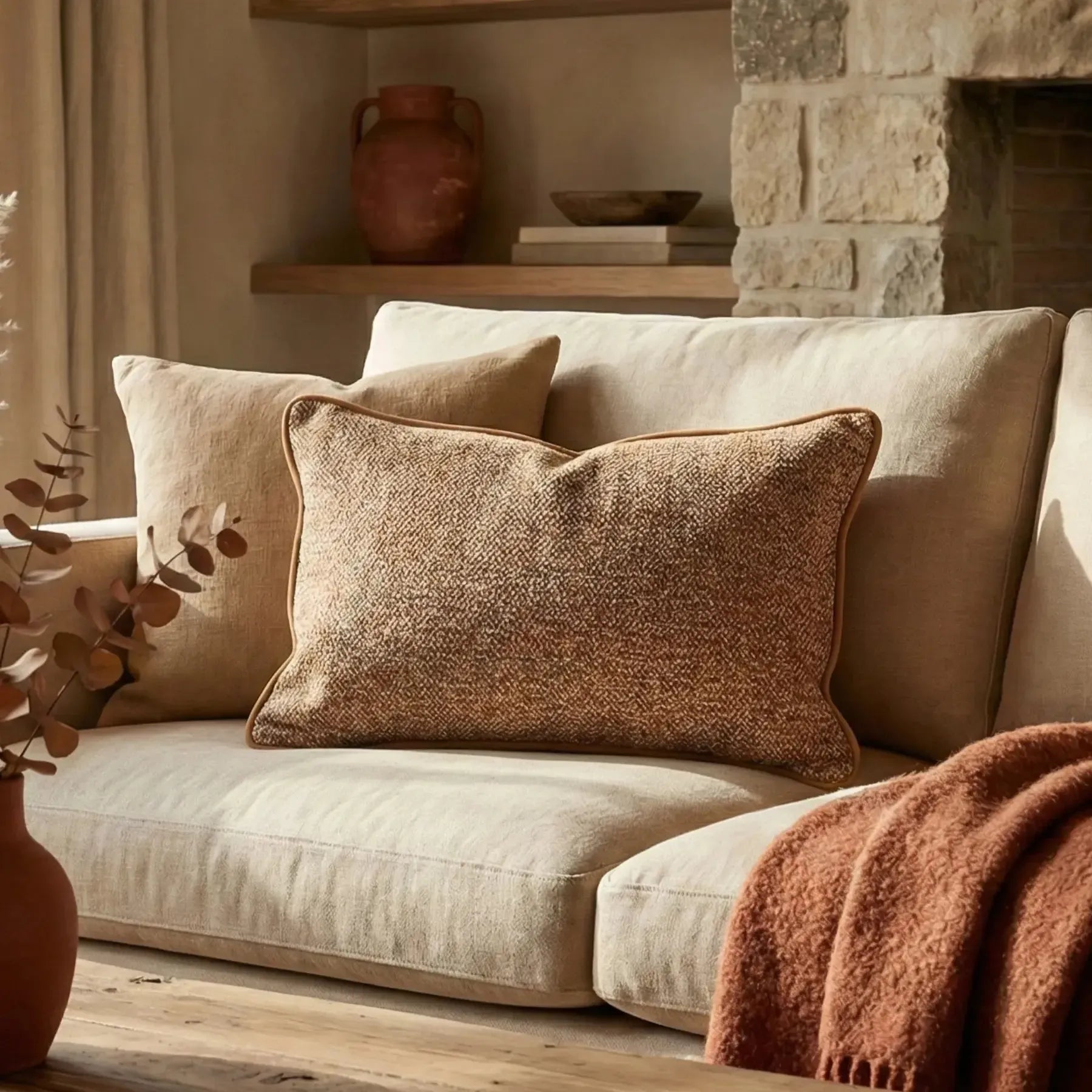 A Almofada Rustica Cordão Camurça Ocre 35 x 52 combina textura elegante e acabamento artesanal para transformar qualquer ambiente com aconchego e sofisticação. Seu tecido com trama rústica em tons neutros cria um visual natural e versátil, enquanto o detalhe em cordão de camurça adiciona um toque refinado que valoriza o design. Macia, durável e perfeita para compor salas, quartos ou varandas, é a escolha ideal para quem busca estilo atemporal aliado ao conforto no décor.