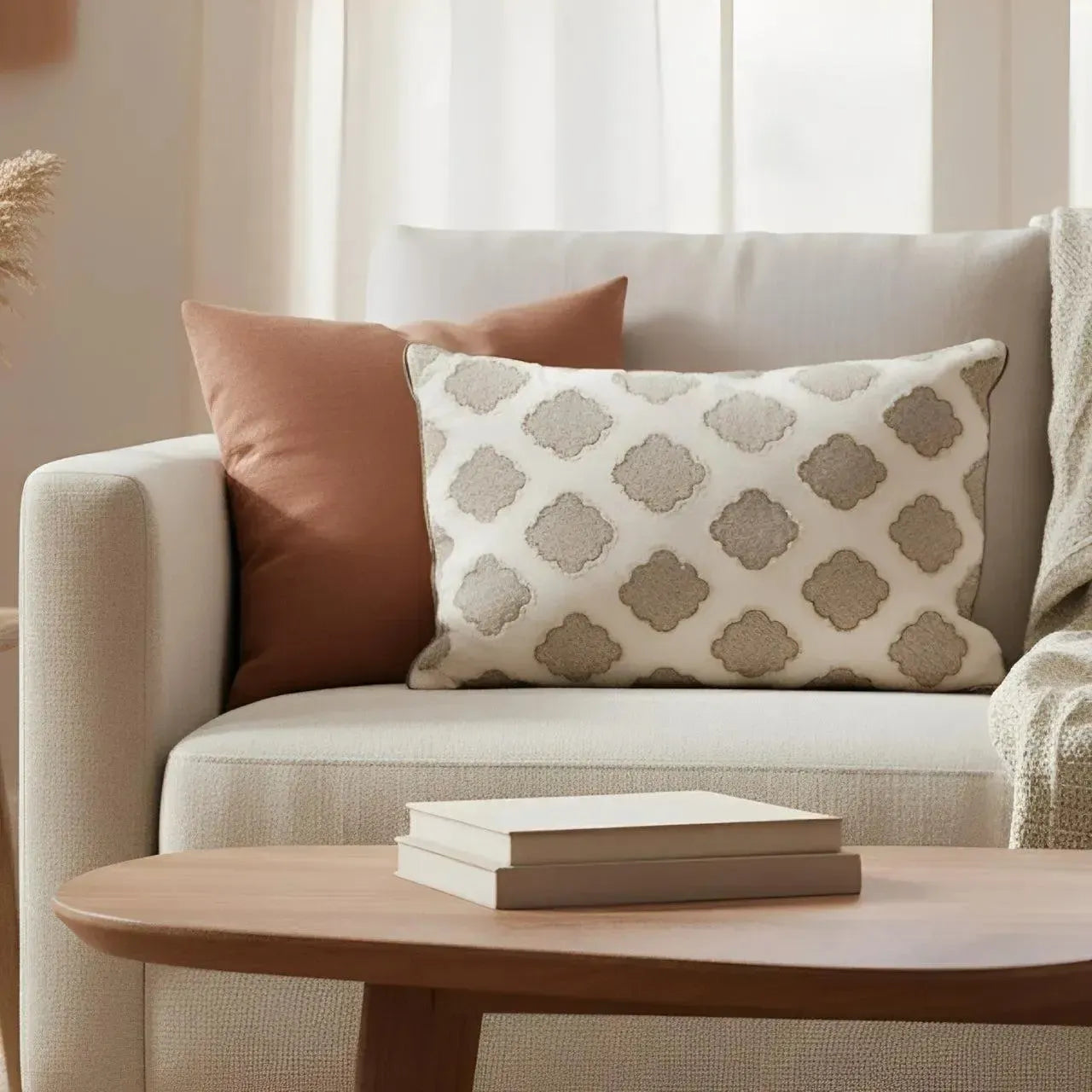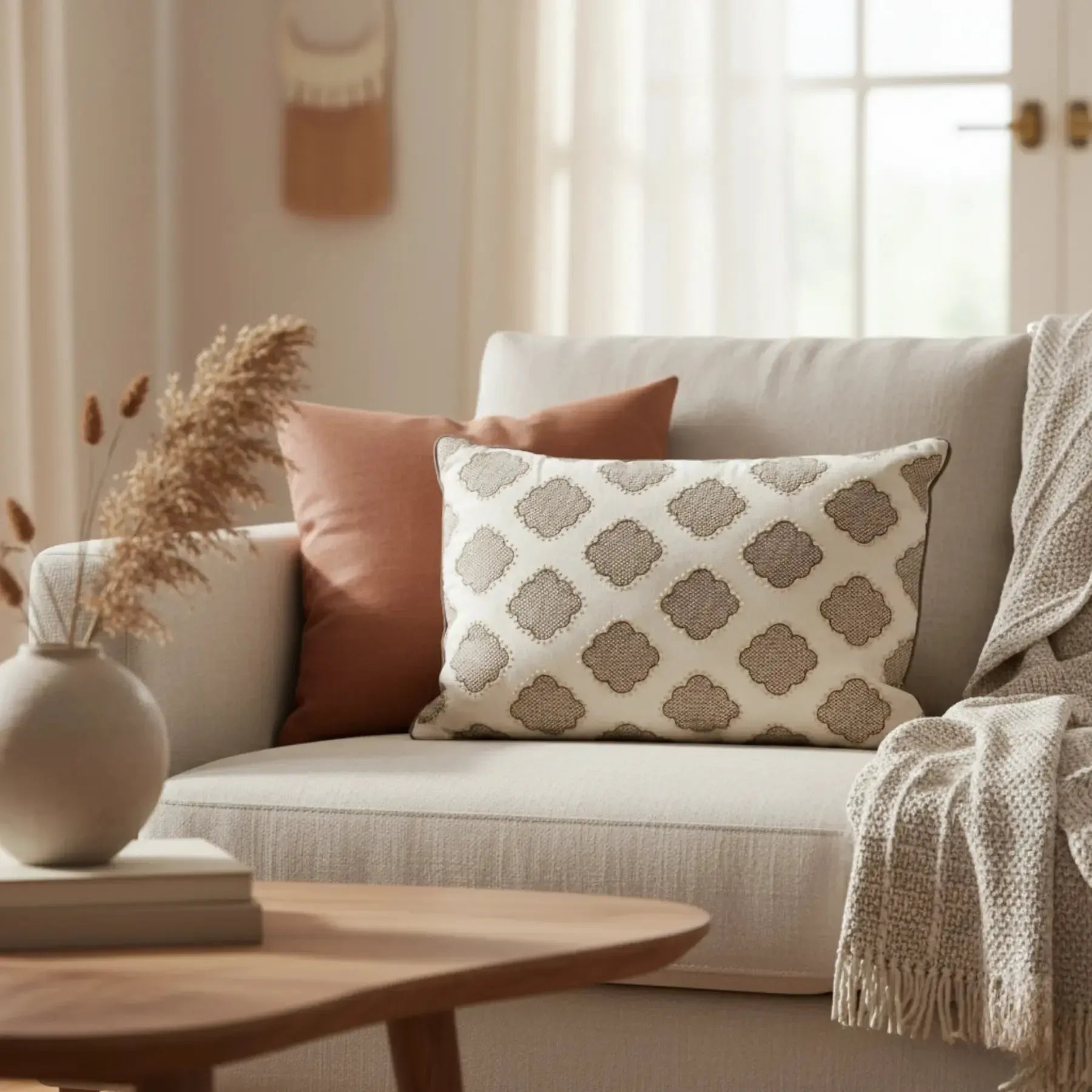 A Almofada Sarja Cru 35x52 Bordado Castanho Fino Indiano Taj une elegância artesanal e charme cultural em uma peça que transforma qualquer ambiente. Confeccionada em sarja cru macia e resistente, recebe um bordado castanho inspirado em padrões indianos tradicionais, com detalhes finos e sofisticados que trazem profundidade e personalidade ao décor. Seu tamanho generoso garante presença e conforto em sofás, poltronas e camas, enquanto o visual delicado e atemporal combina facilmente com estilos contemporâneos, boho, natural ou clássico. Uma almofada que transmite leveza, harmonia e beleza única — perfeita para quem busca adicionar um toque artístico e acolhedor ao lar.