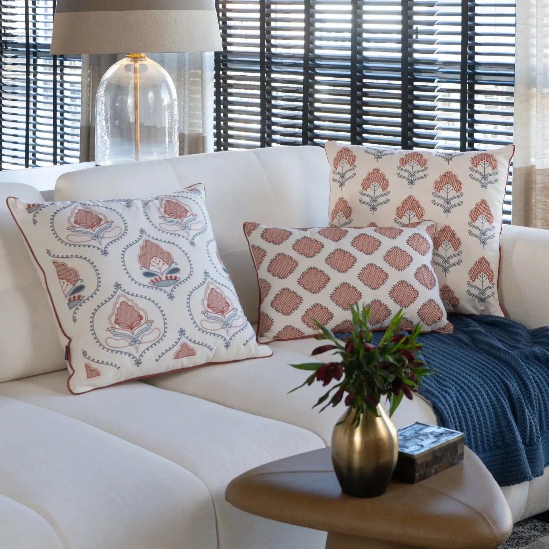 A Almofada Sarja Cru 52 x 52 Bordado Terracota Fino Indiano Rajah une elegância artesanal e charme cultural em uma peça que transforma qualquer ambiente. Confeccionada em sarja cru macia e resistente, recebe um bordado terracota inspirado em padrões indianos tradicionais, com detalhes finos e sofisticados que trazem profundidade e personalidade ao décor. Seu tamanho generoso garante presença e conforto em sofás, poltronas e camas, enquanto o visual delicado e atemporal combina facilmente com estilos contemporâneos, boho, natural ou clássico. Uma almofada que transmite leveza, harmonia e beleza única — perfeita para quem busca adicionar um toque artístico e acolhedor ao lar.