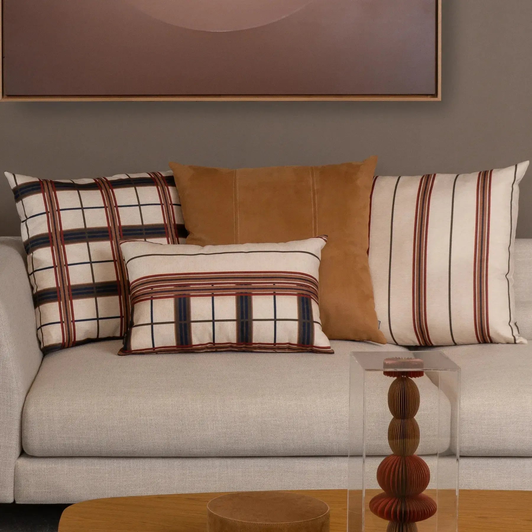 A Almofada Viscose 35 x 52 Estampado Natural combina elegância contemporânea com o charme clássico do padrão listrado. Confeccionada em viscose de toque suave, apresenta tons naturais harmonizados com listras em marinho, terracota e marrom, criando um visual acolhedor e sofisticado. Seu tamanho de 52x52 cm é ideal para compor sofás, poltronas e camas, acrescentando textura e estilo ao ambiente. Uma peça versátil, perfeita para quem busca transformar a decoração com conforto e personalidade.