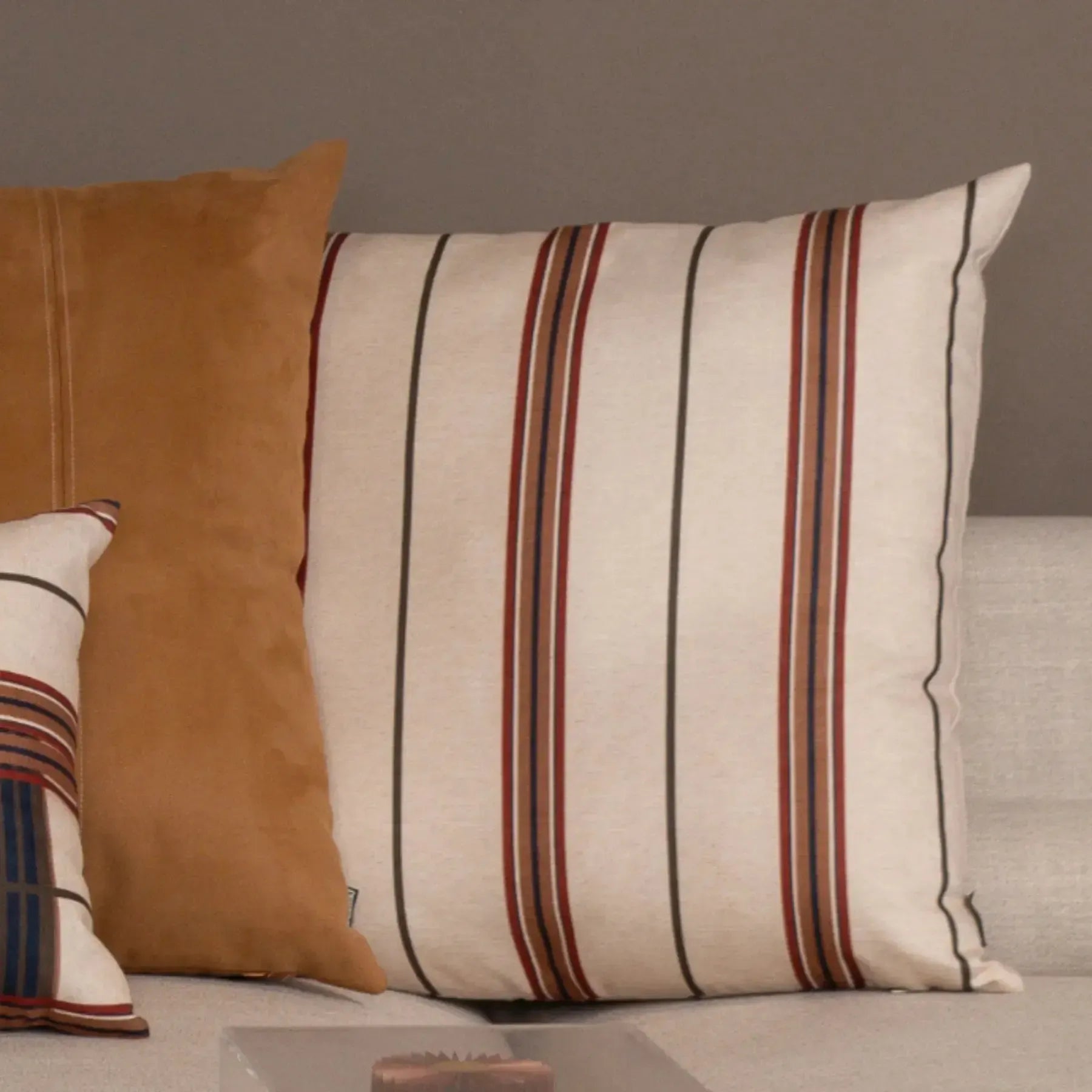 A Almofada Viscose 52 x 52 Listra Natural combina elegância contemporânea com o charme clássico do padrão listrado. Confeccionada em viscose de toque suave, apresenta tons naturais harmonizados com listras em marinho, terracota e marrom, criando um visual acolhedor e sofisticado. Seu tamanho de 52x52 cm é ideal para compor sofás, poltronas e camas, acrescentando textura e estilo ao ambiente. Uma peça versátil, perfeita para quem busca transformar a decoração com conforto e personalidade.