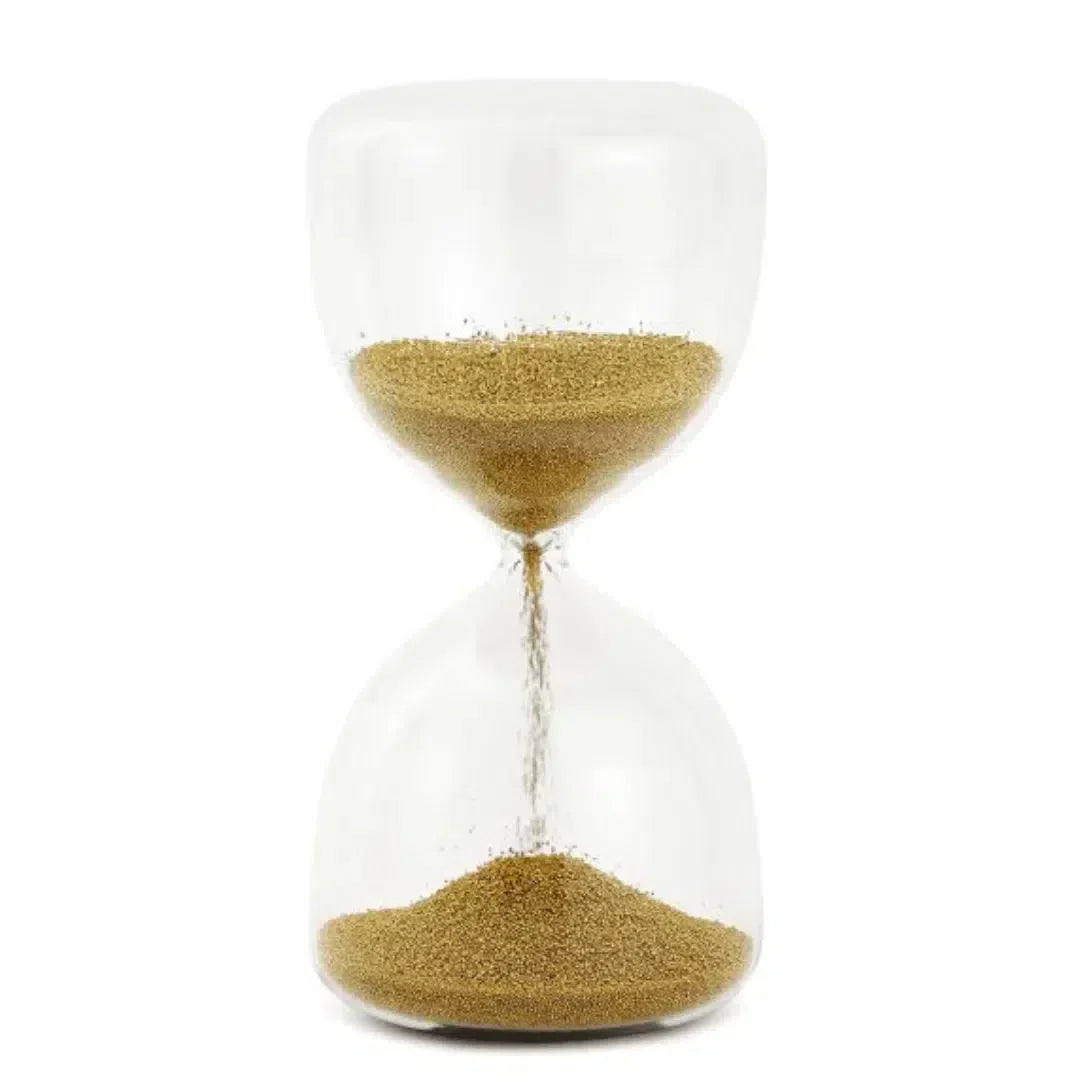 Ampulheta em Vidro com Areia 15 Minutos Dourada 16x08cm Mart
